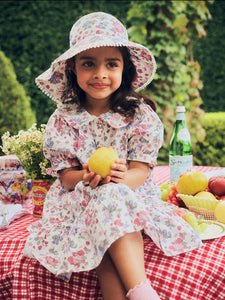 A hat they'll actually want to wear. This wide brim sun hat is practical and pretty. Made from breathable organic cotton, it features a sweet strawberry garden print and wider brim for extra sun protection. Adjustable chin strap to prevent from flying away.